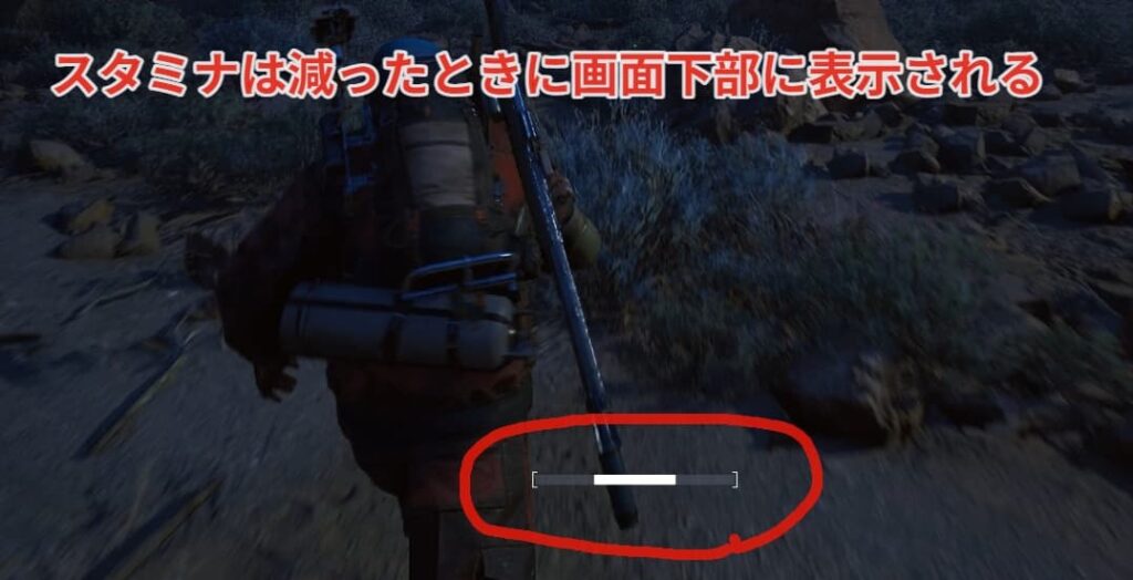 スタミナは走ったり登ったり消費すると画面下部に表示される白いゲージですね。