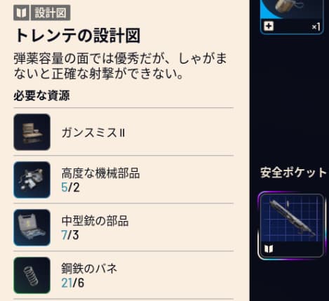 上の画像の箱からトレンテ(武器)の設計図がでました。