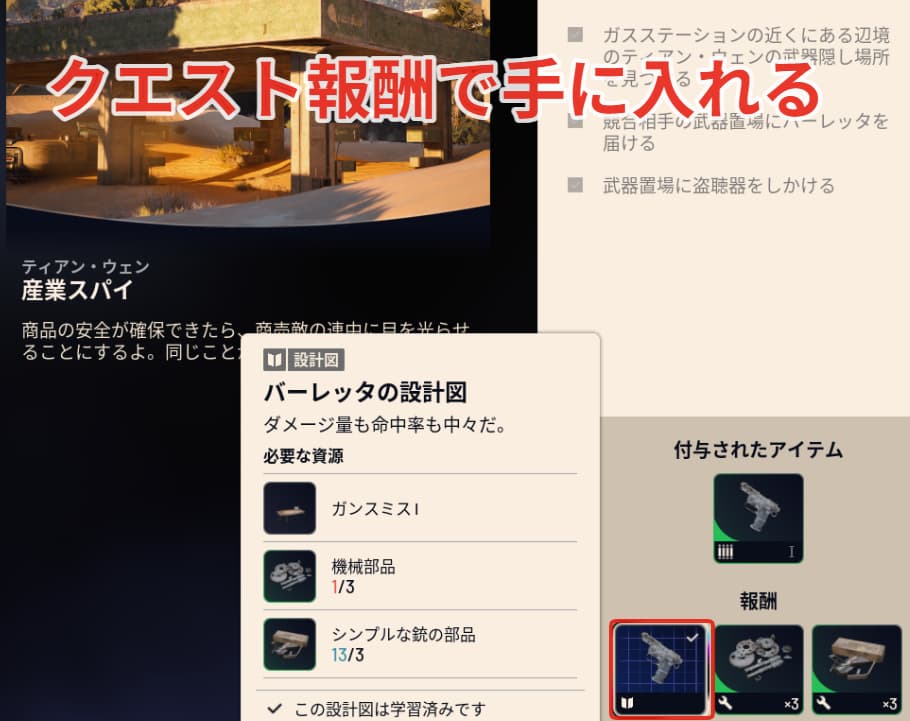 マップ上で様々な漁れるコンテナ・ロッカーなどから設計図が出ることがあります。