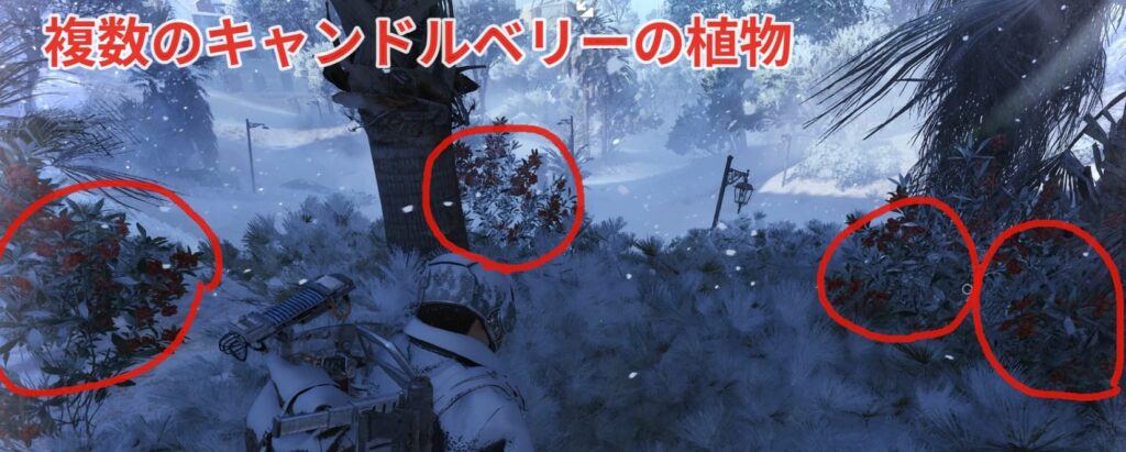 キャンドルベリーをレイド中に拾う場合(①~③)はマップイベントが寒波の場合のみ手に入れることができます。