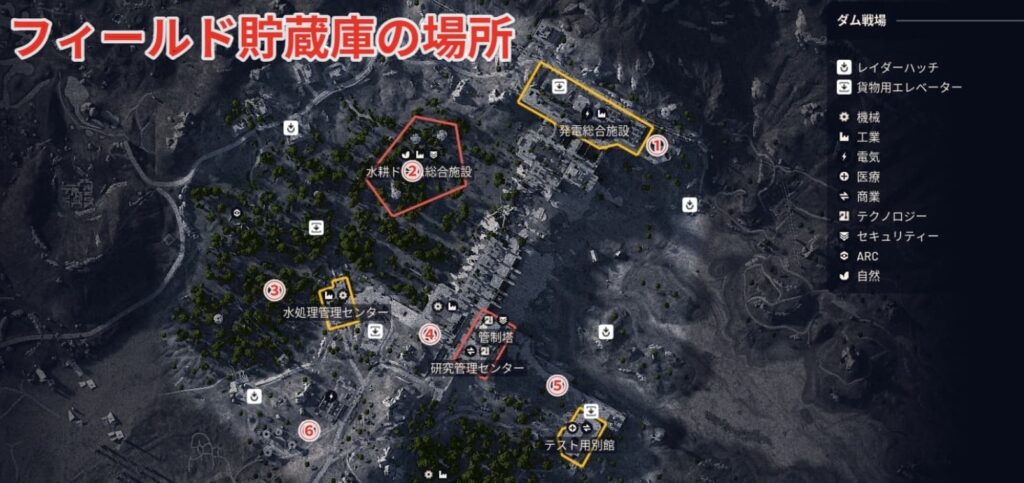 ダム戦場のフィールド貯蔵庫の場所について(全6ヶ所)