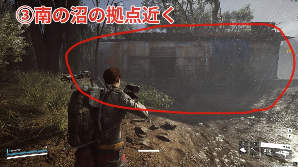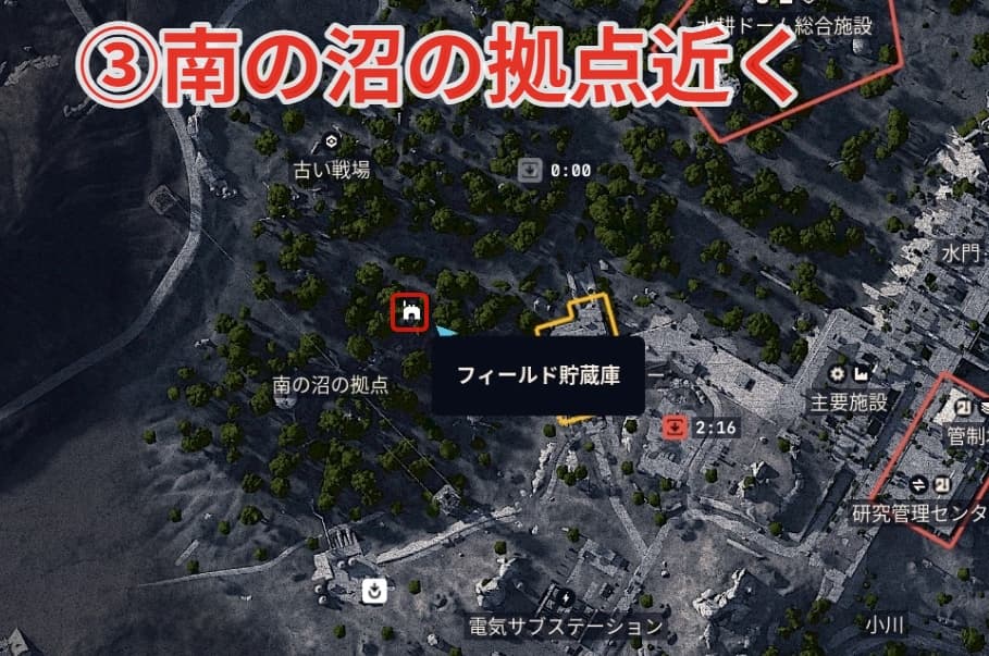 南の沼の拠点の近くにフィールド貯蔵庫があります。