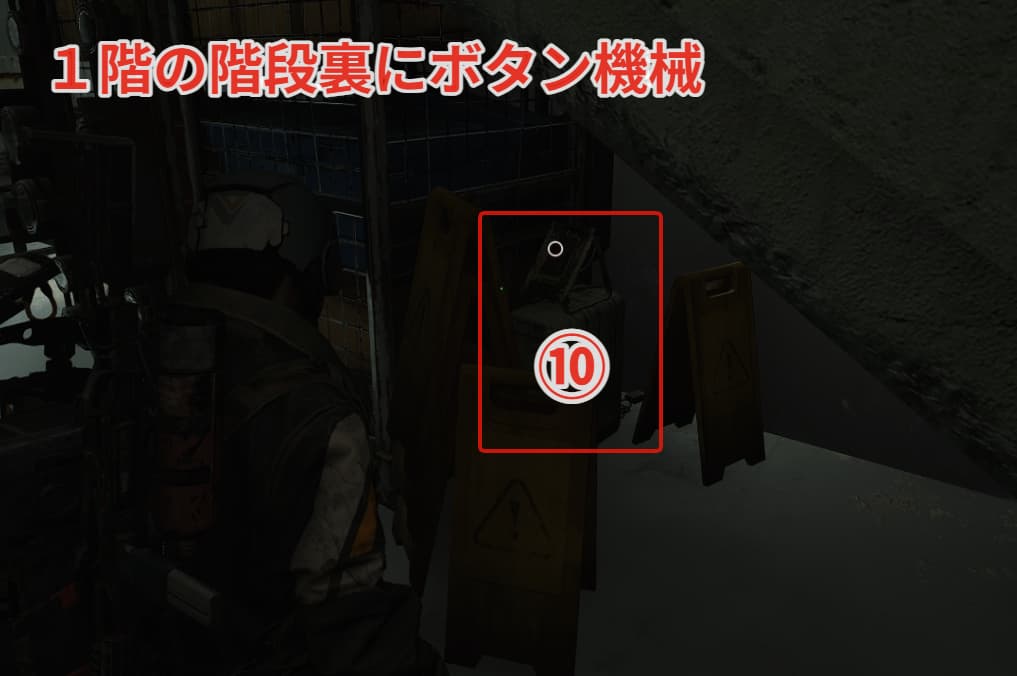 1階の階段裏にボタンの機械が隠れています。