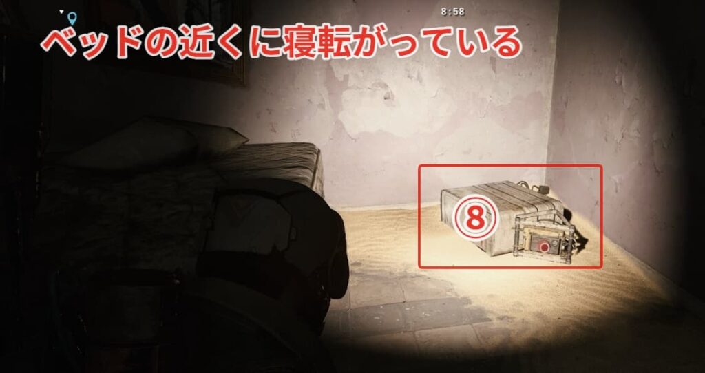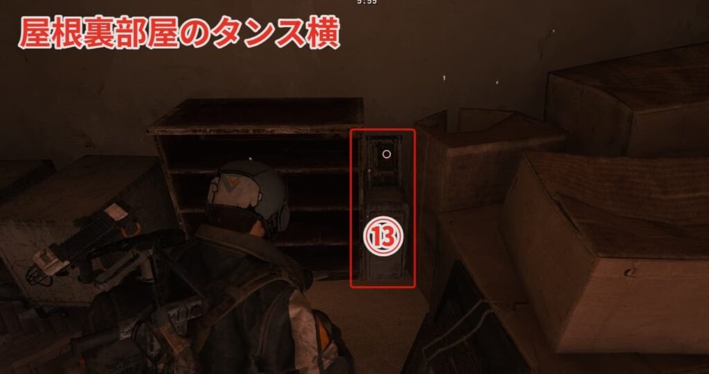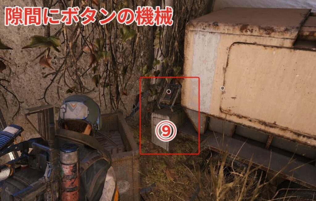 ⑨ボタンの場所は埋もれた不動産近くのフィールド貯蔵庫の南側建物です。