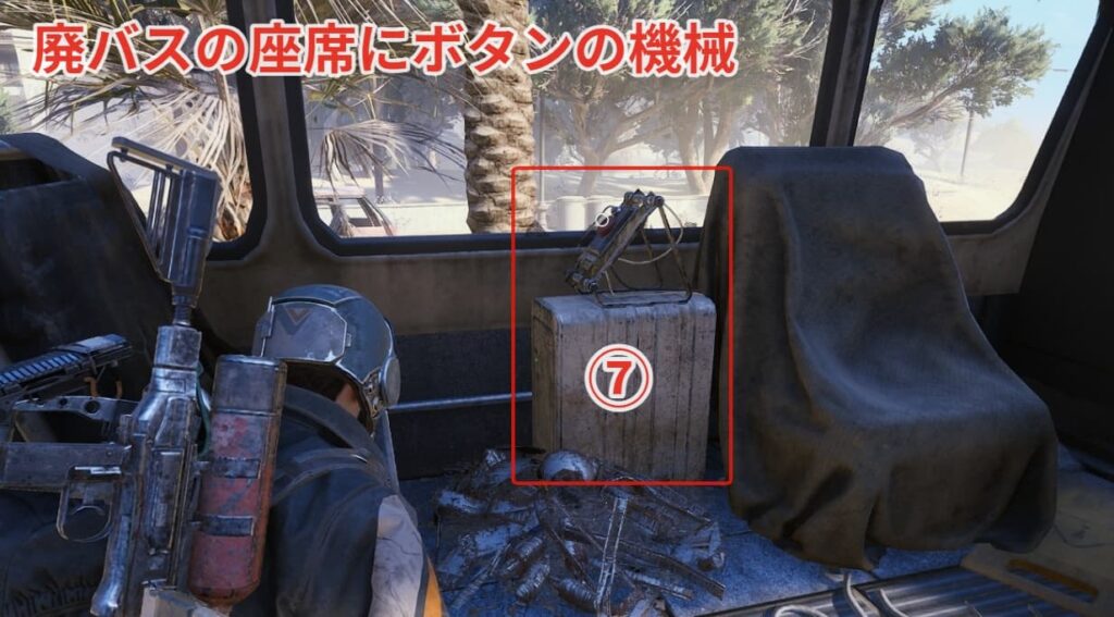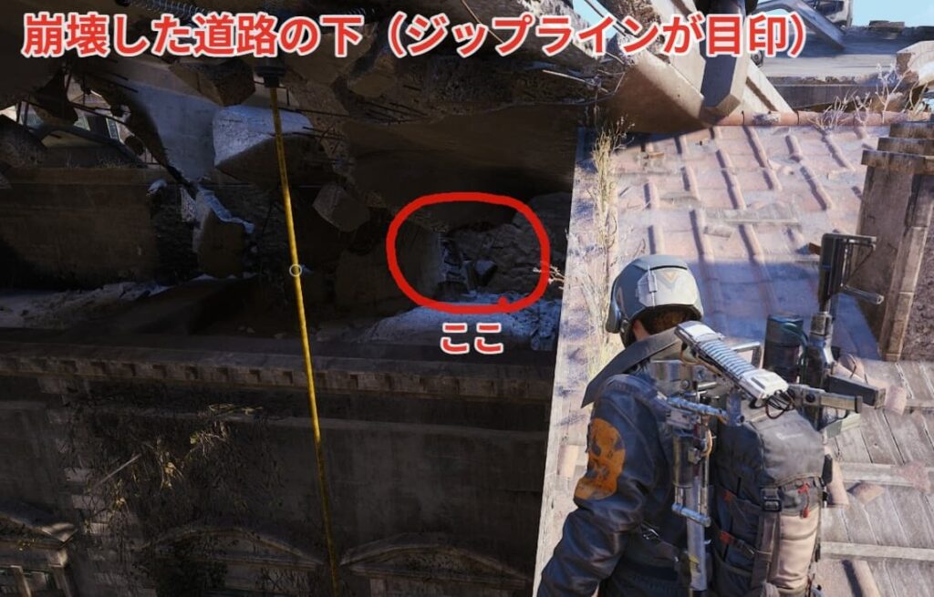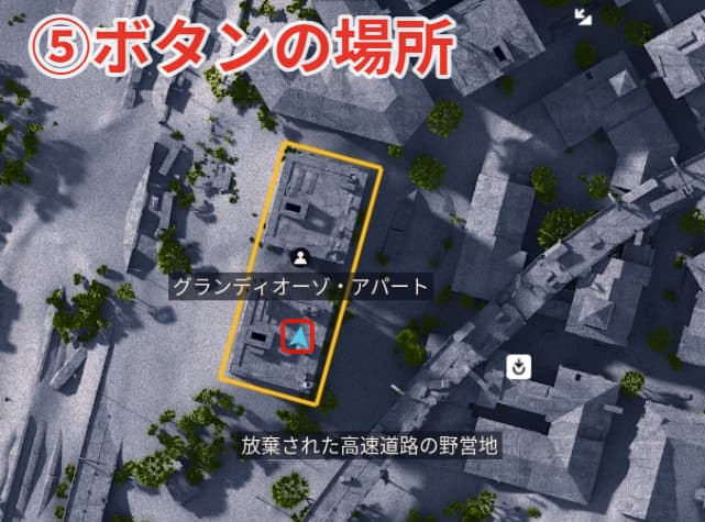 ⑪ボタンの場所は崩壊した高速道路の下にあります。