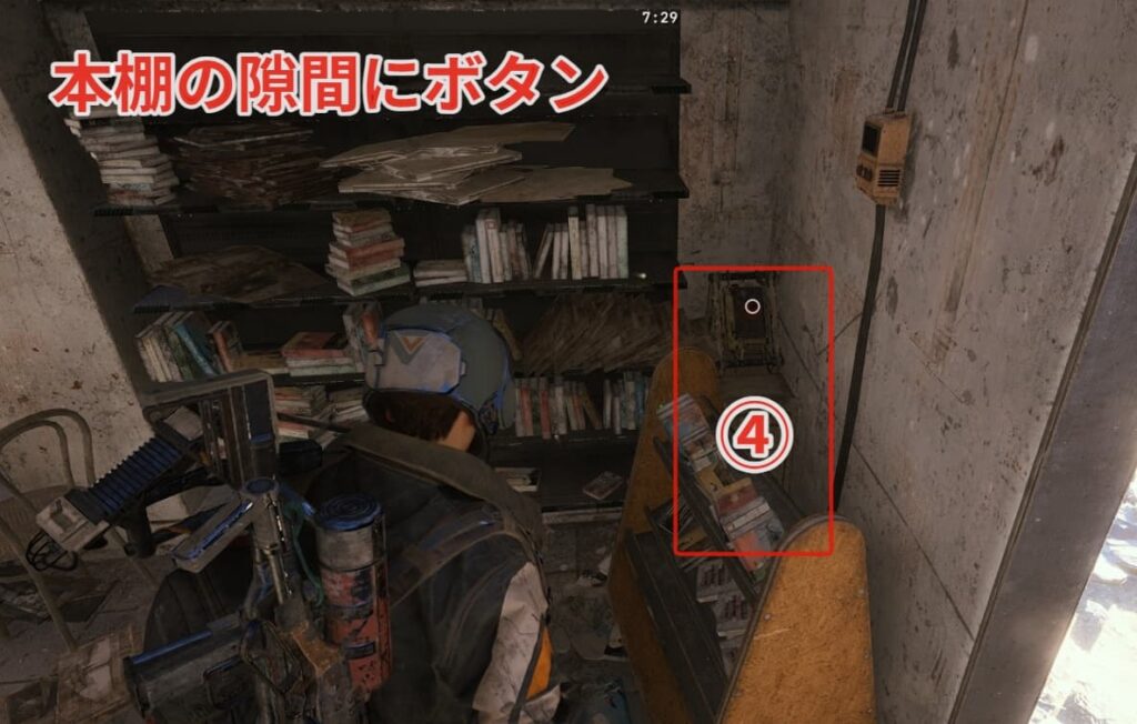 本棚の隙間にボタンがあります。