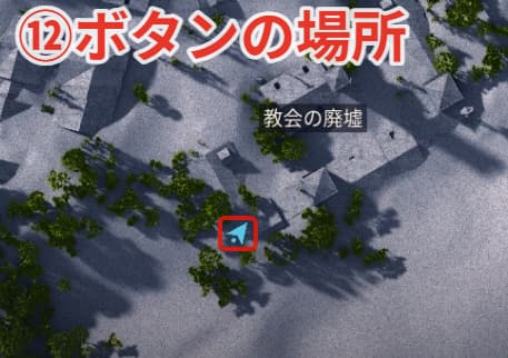 ⑫ボタンの場所は教会の廃墟にあります。