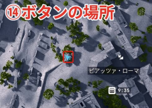⑬ボタンの場所はサンタマリアの家々の横の建物です。