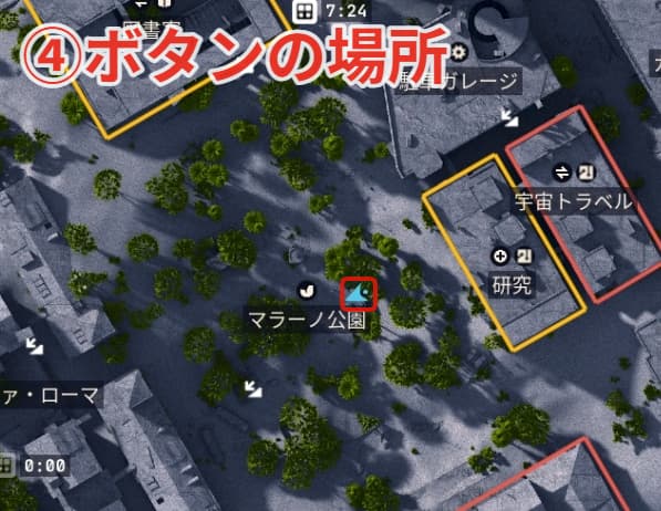 ④ボタンの場所はマラーノ公園の中央辺りです。