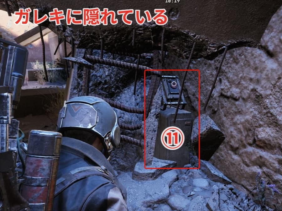 ガレキに近づくと裏にボタンが隠れています。