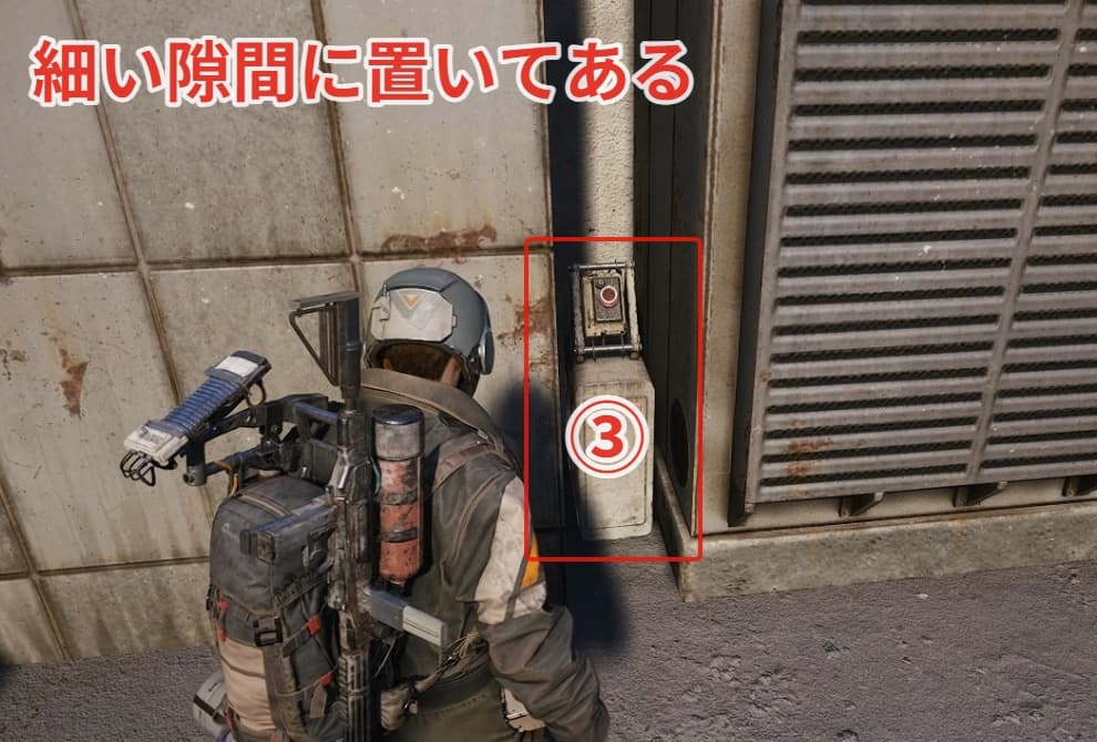 ③ボタンの場所は倉庫の屋上です。