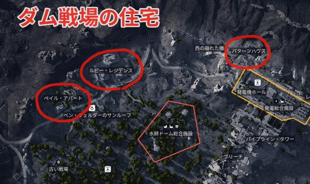 一番最初から出撃できるダム戦場では、北側に3つの住宅地があるのでそちらを漁りに向かいましょう。