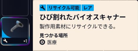 ひび割れたバイオスキャナーは医療エリアに出現しやすいです。