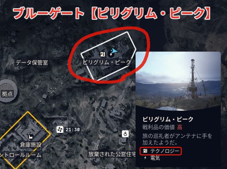 筆者のお勧めはブルーゲートのピリグリム・ピークです!ここはテクノロジーエリアに指定されています。