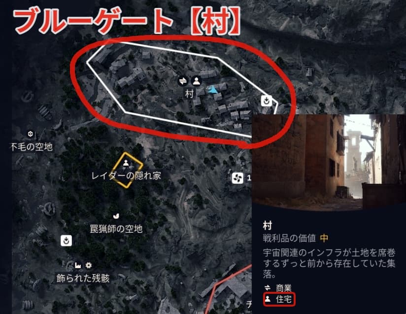 筆者が記事作成時に見つけた場所はブルーゲートの村です!