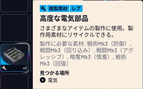 アイテムをリサイクルすることでも高度な電気部品を手に入れることができます。