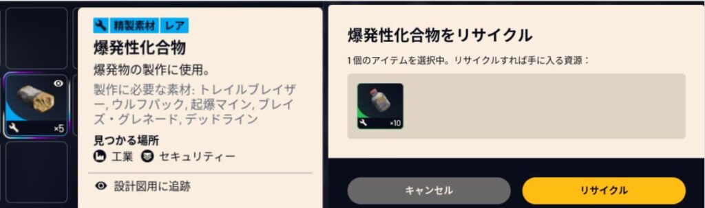 粗製爆弾はアイテムをリサイクルすることでも手に入ります。
