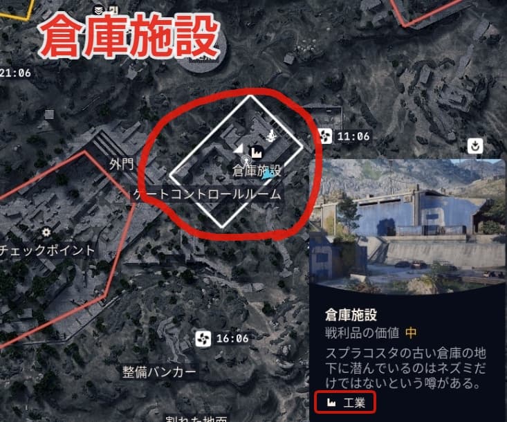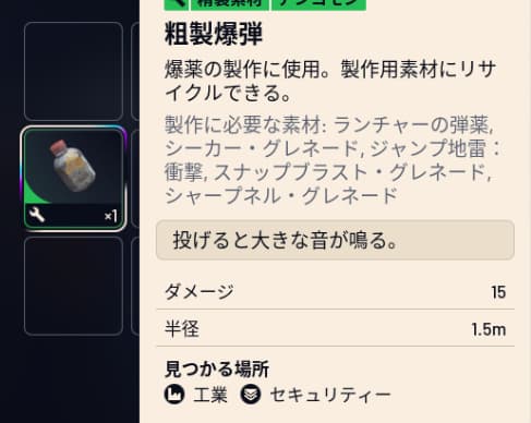 粗製爆弾は【工場・セキュリティー】で拾うことができます。