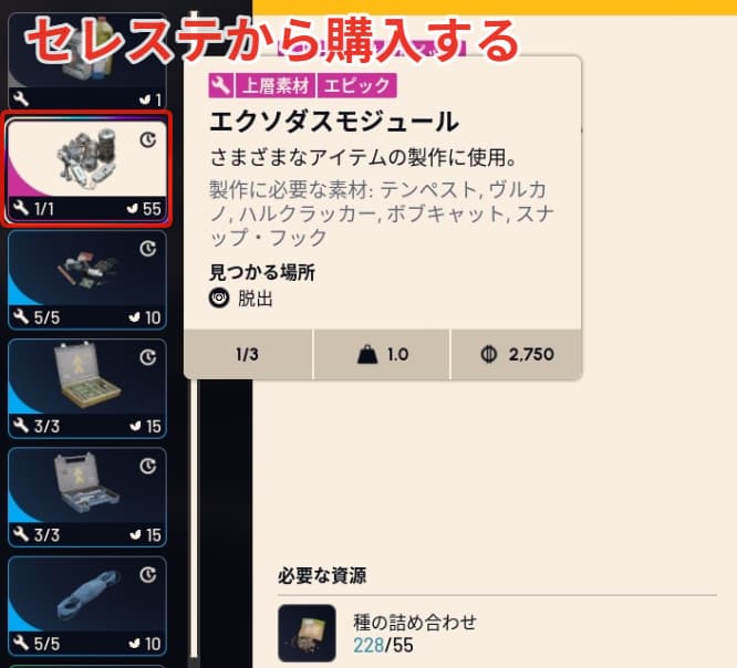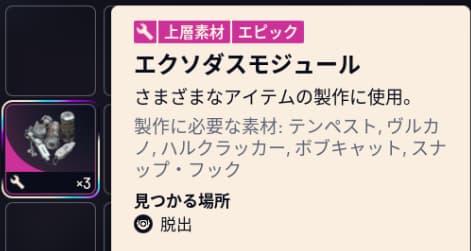 エクソダスモジュールは【脱出】エリアで出現しやすいです。