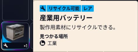 産業用バッテリーは【工業エリア】で拾うことができます。