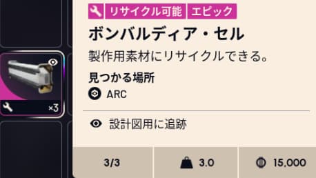 ボンバルディア・セルは名前の通り大型ARC【ボンバルディア】を倒した際にドロップするエピックアイテムです。