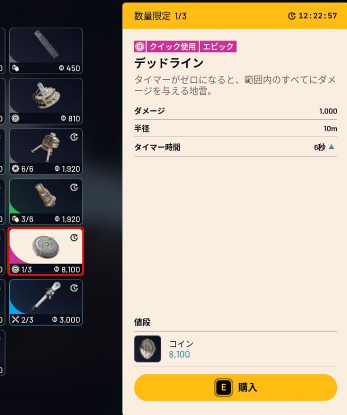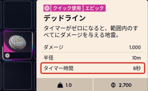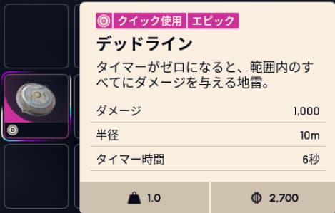 デットラインは設置した6秒後に1,000ダメージを与える強力な地雷です。