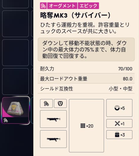 今回はARC Raidersのエピックオーグメント略奪MK3(サバイバー)に記載されているオプション効果について紹介していきます。