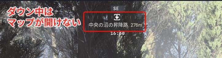 しかし、ダウン中はマップが開けないので遠くでダウンすると画面上部や記憶を辿りに脱出口に向かう必要があります。