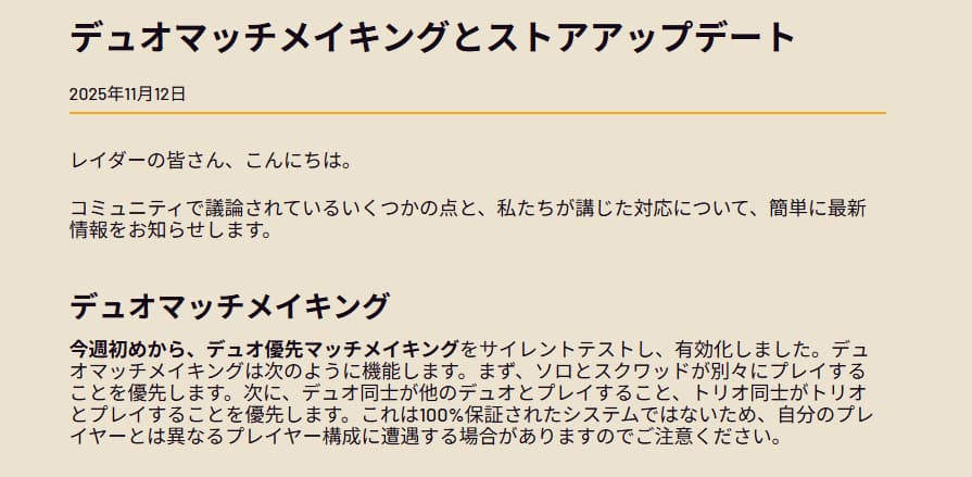 2025/11/12追記: 2人パーティ同士がマッチング優先されるようになりました。