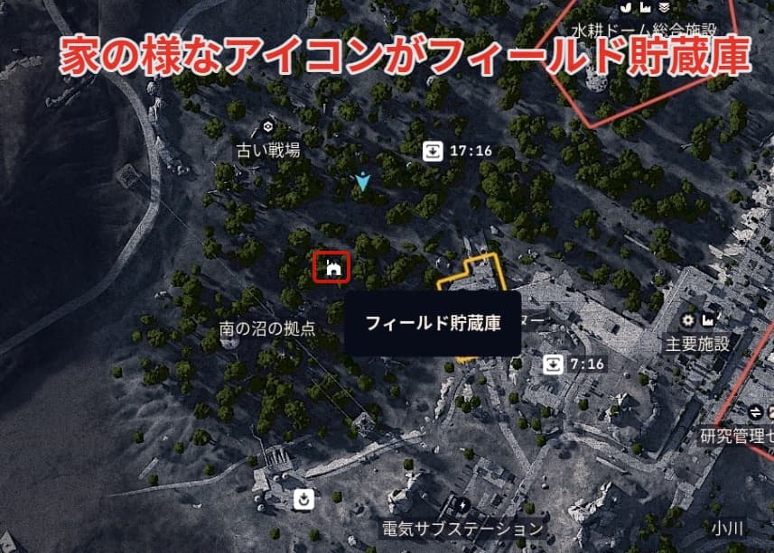 フィールド貯蔵庫は近づくとマップ上に表示されるようになります。