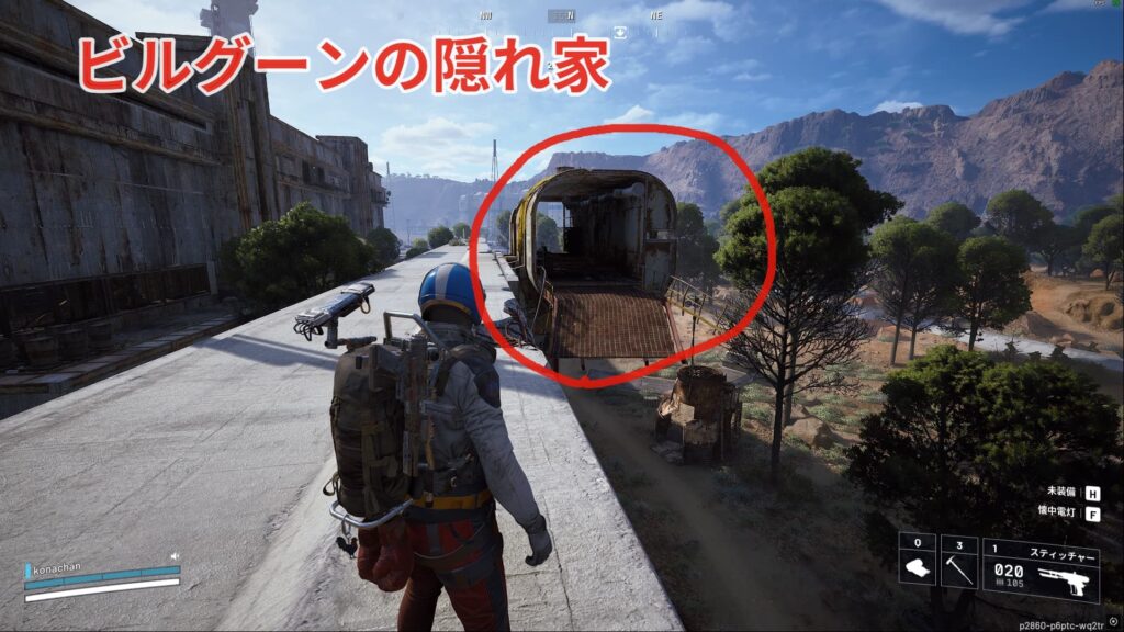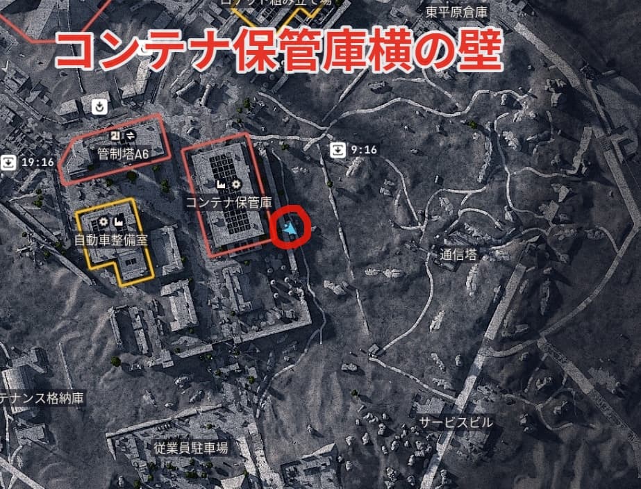 ビルグーンの隠れ家は宇宙港のコンテナ保管庫横の壁にあります。