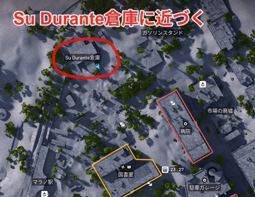 マップ左上にあるスー・ドゥランテ倉庫に近づけばOK