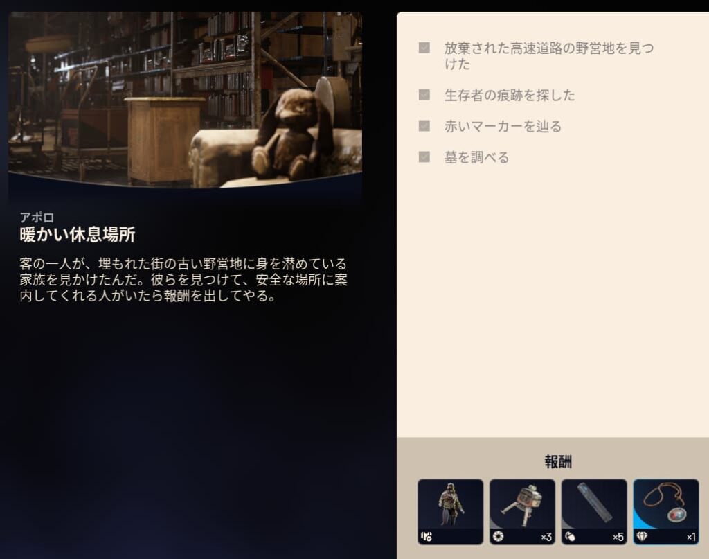 今回はARC Raidersの【暖かい休息場所】について紹介していきます。