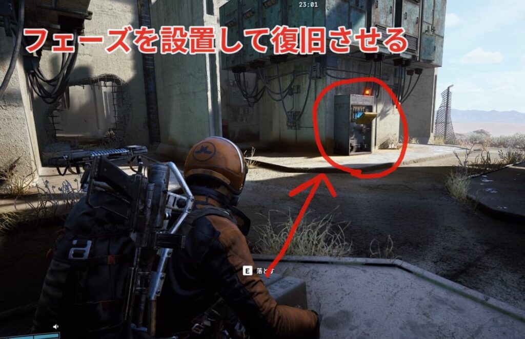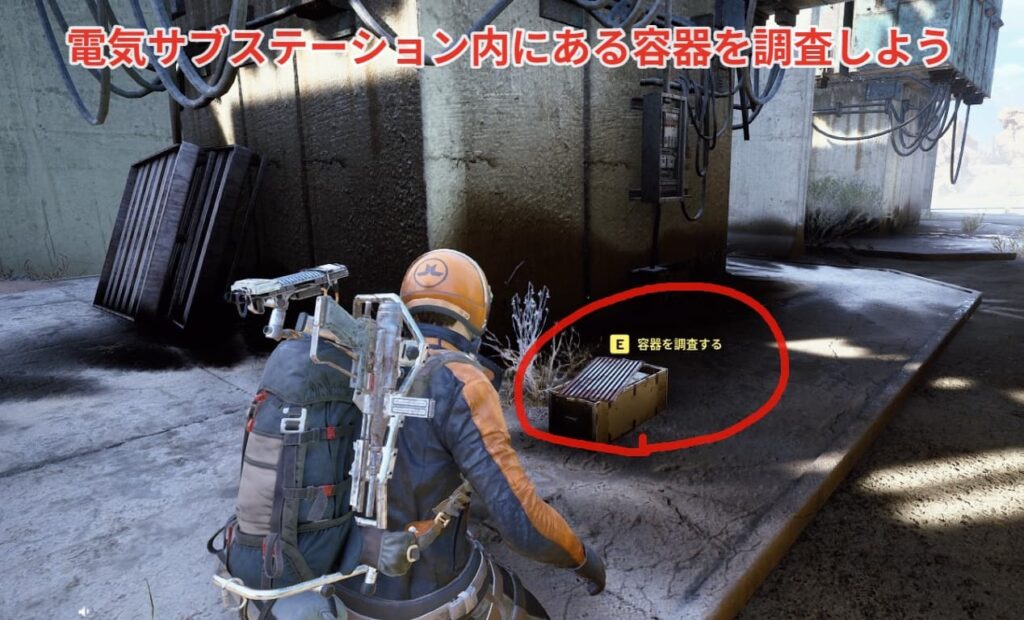 電気サブステーション内に容器があるので調査してフューズを出しましょう。