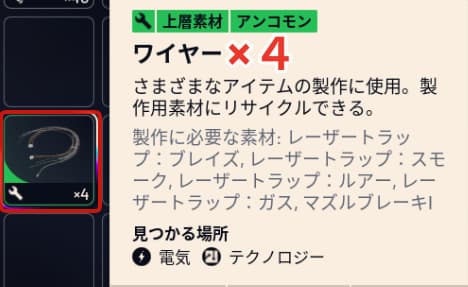ちらつく脅威ではクエスト情報では記載ありませんが、【ワイヤー×4】がひつようになります。