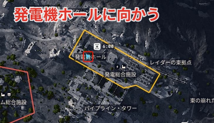 まずは発電機ホールの地下に向かって下さい。画像の位置です!