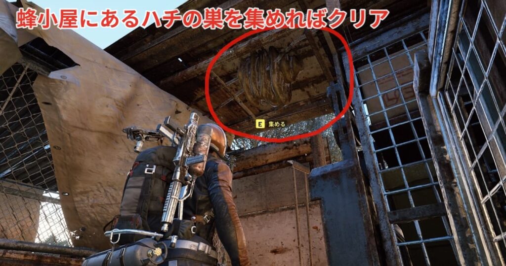 蜂小屋の上部にハチの巣があるので集めればクリアです。