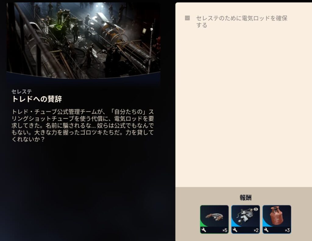 トレドへの賛辞では【電気ロッド】を1つ納品する必要があります。