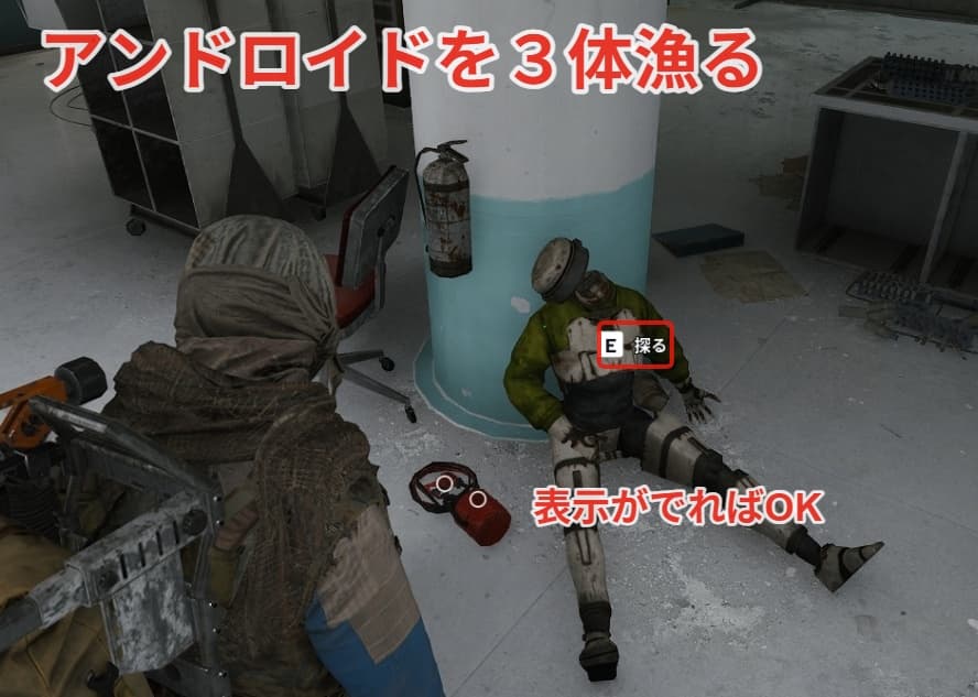 こちらも何体かアンドロイドが配置されているので探しにむかいましょう!