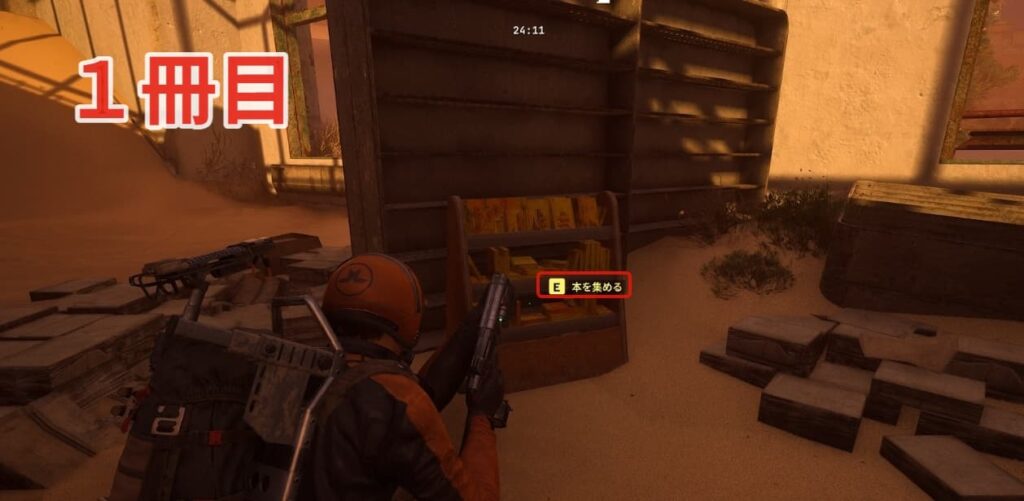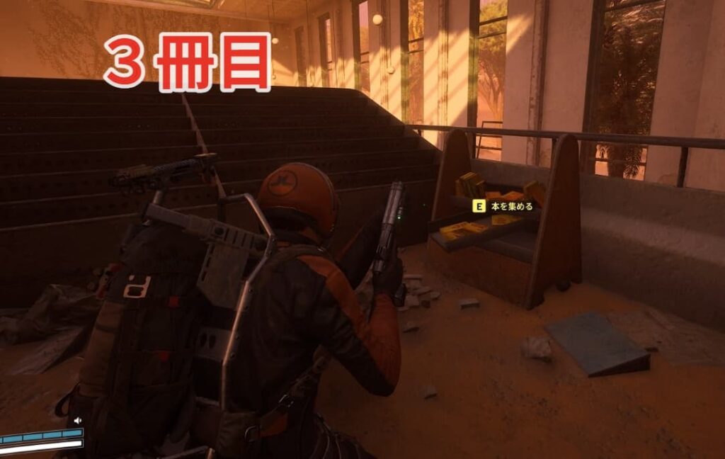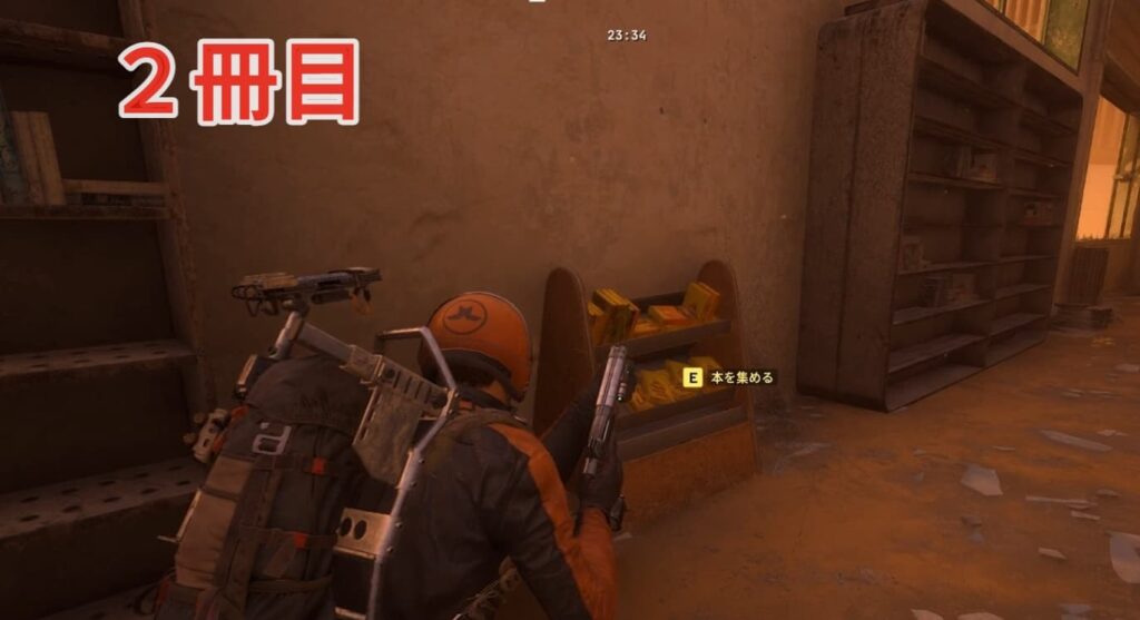 3冊目は2階の中央寄りの倒れた大きな本棚近くです。