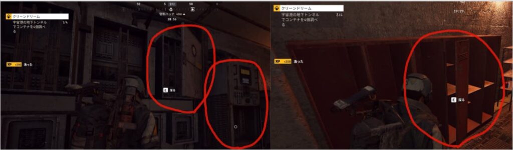 ①宇宙港の地下トンネルでコンテナを4個調べる