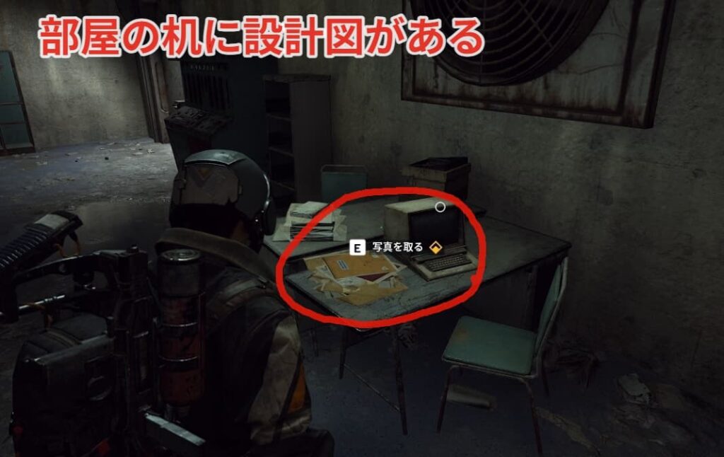 - ⑤バンカーの設計図を見つけて写真を撮る