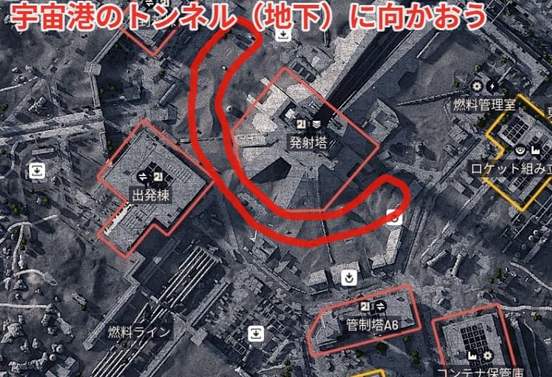 - ①宇宙港の地下トンネルでコンテナを4個調べる