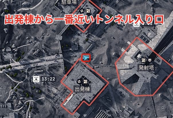 出発棟の正面出口から地下トンネルの送水用端末までの行き方