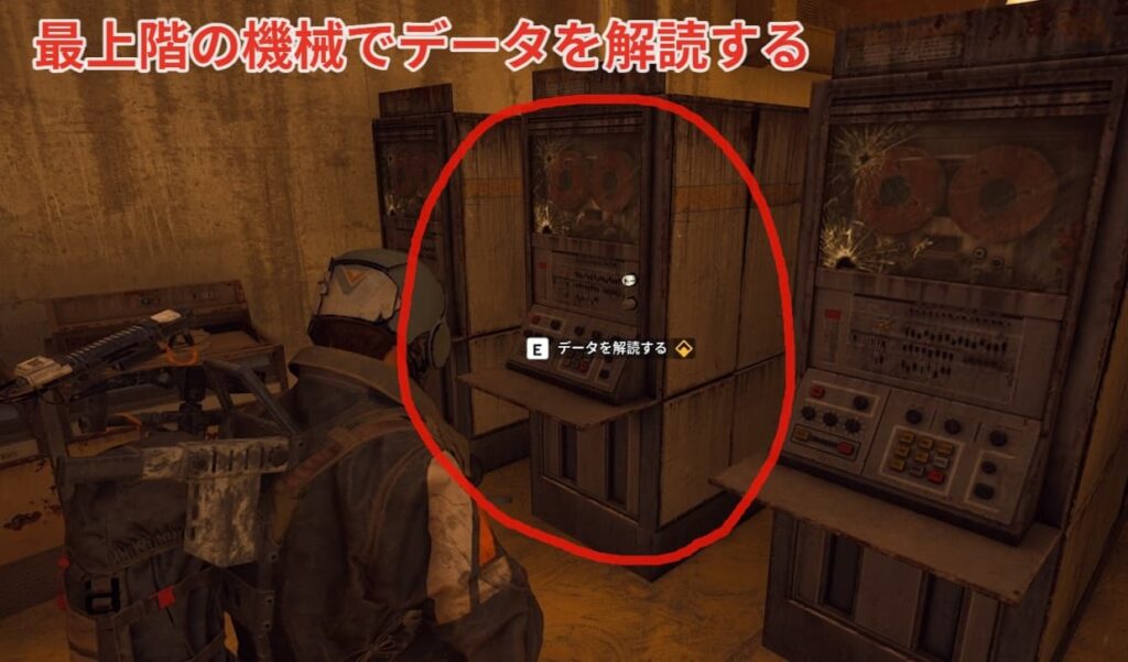 到着棟の最上階に機械があるのでデータを解読すればクリアです。