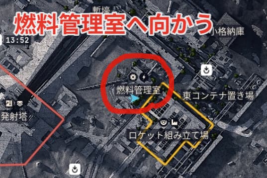 まずはロケット組み立て場の横にある燃料管理室へ向かいましょう。