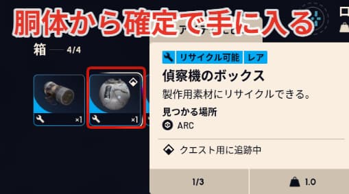 ARC偵察機撃破後は確定で偵察機のボックスが手に入ります。
