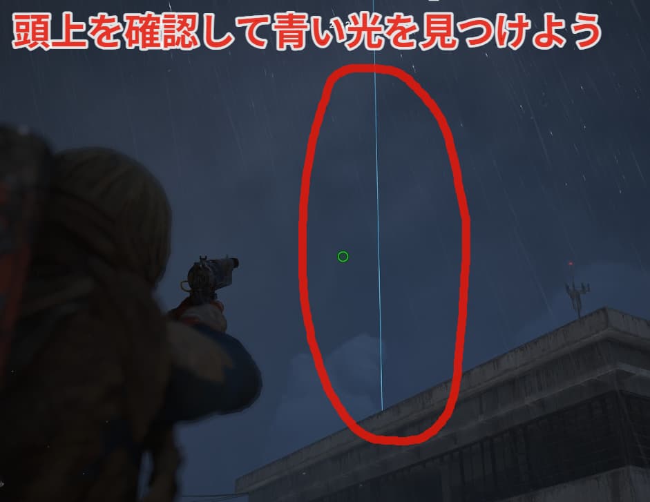 ARC偵察機が撃破されていない、なおかつ付近の他プレイヤーがいなければ青い光が定期的に見えるはずです。