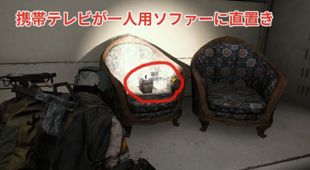 コメントの情報通りにソファーに携帯テレビが直置きされていた。