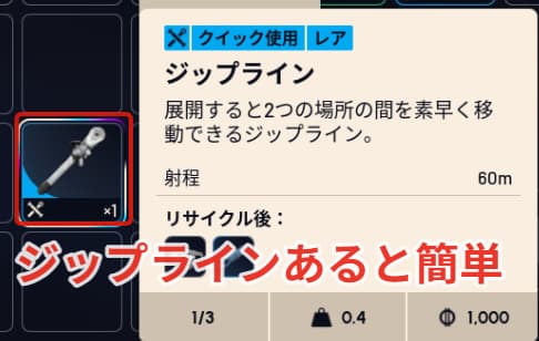 ジップラインを使う場合は高速道路の中の左側に合わせて設置すると何もせずに中にスッと入れます。